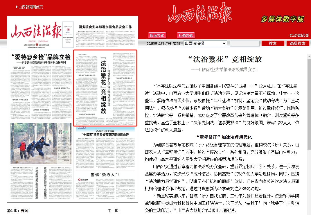 在法治之光的引领下,山西农大奋力谱写着“农”“法”交相辉映的治校新篇。如今的农大,“法治繁花”正竞相绽放。